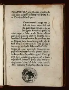 У минулому тисячолітті були виявлені нові роботи Катерини і видані на італійську мову в її рідній Болоньї. Ось їх опис кардиналом Біффі Джакомо (італ. Giacomo Biffi):