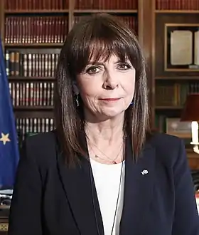 Катерина Сакелларопулу (грец. Αικατερίνη Σακελλαροπούλου, 30 травня 1956, Салоніки, Греція) — президент Греції з 13 березня 2020[5]. Обрана наступником президента Прокопіса Павлопулоса парламентом Греції 22 січня 2020. До свого обрання обіймала посаду президента Державної ради, вищого адміністративного суду Греції[6], з жовтня 2018 року. Після інавгурації стала 13-м президентом Греції (восьмим в історії нинішньої Третьої Грецької Республіки) і першою жінкою, що обійняла цю посаду[7].