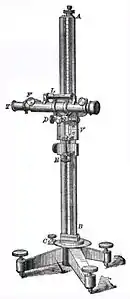 Катетометр - прилад для точного вимірювання вертикальних відстаней між точками (не обов'язково лежачими на одній вертикалі) при фізичних дослідах. Катетометр був винайдений французькими фізиками П'єром Дюлонгом і Алексісом Пті в 1816 році для вимірювання різниці рівнів ртуті в сполучених посудинах; різні удосконалення в його пристрій було внесено Д.І. Менделєєвим.