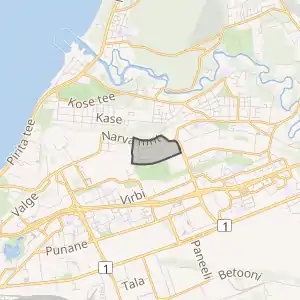 ![]() Територія мікрорайону (червоний колір) на фоні району Ласнамяє (жовтий). |