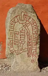 Зі східного боку церкви знаходиться відомий рунічний камінь.