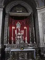 Рака з мощами святої Розалії розміщуються за вівтарем у південній (правій) апсиді собору. Первинно доступ до капели було закрито масивними бронзовими воротами, але зараз вони постійно відчинені. Статуя, що вінчає раку, й завівтарний образ зображують святу у вигляді юної дівчини з вінцем із троянд. Ці зображення, значною мірою. є умовними, оскільки жодних відомостей про зовнішність святої не збереглось. Стіни капели увішані численними вотивними дарунками вдячних віруючих.