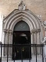 Західний портал собору було зведено 1352 року в готичному стилі, оточений двома малими вежами-дзвіницями, збудованими між 1250 і 1342 роками. Вежі прикрашені тонкою скульптурною ліпкою, що нагадує ісламські абстрактні й рослинні мотиви. Чотири яруси веж прикрашені типово арабсько-норманськими арками й вікнами-біфорами (тобто вікнами, розділеними навпіл по вертикалі вузькою колоною)[7].