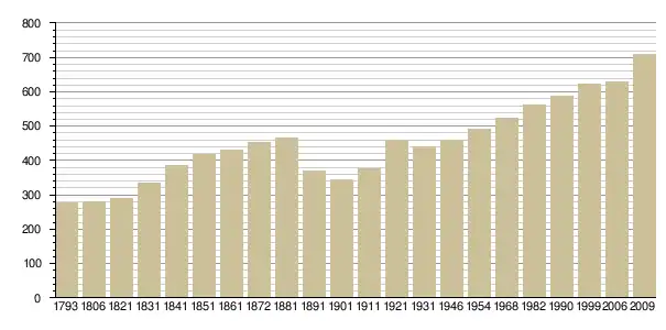 Динаміка населення (base Cassini de l'EHESS pour les nombres retenus jusque 1962[3], base Insee à partir de 1968 (population sans doubles comptes puis population municipale à partir de 2006)[4] · [5] ):
