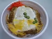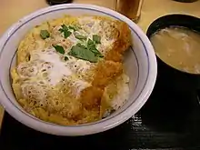 ![]() Типова подача кацудона в ресторані разом з місо-супом | |