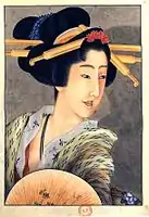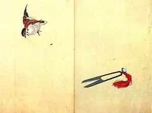 Сурімоно — вид традиційного японського мистецтва, кольорова ксилографія специфічного, цілком певного призначення — служити подарунком у середовищі японської міської інтелігенції. Приводом могло бути що завгодно: ювілей, народження сина, прихід пори цвітіння сакури, зміна прізвища, прийдешній Новий рік. Жанрова різноманітність сурімоно була дуже значною, мальовничий план творів міг стосуватися багатьох жанрів: зображення людей, тварин, кате (зображення квітів та птахів), «гір і вод» (пейзажів).