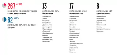 Усього 3 500 людей подали заявки на участь у даному проєкті як кандидати в депутати, однак допомогу отримували лише ті кандидати, які висловлювали чіткі опозиційні та демократичні позиції. 999 людей були висунуті, 267 з яких стали депутатами. У 62 із 125 районів Москви є як мінімум один депутат, якого підтримав проєкт, а у 17 районах такі депутати виграли більшість мандатів.