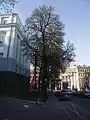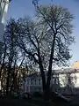 Ботанічна пам'ятка природи місцевого значення «Каштан Воїнственського» (втрачена) була оголошена рішенням Київської міської ради від 27 листопада 2009 року N 713/2782 «Про оголошення об'єктів природно-заповідного фонду пам'ятками природи місцевого значення у м. Києві» (м. Київ, вул. Б. Хмельницького, 13/2). Дерево мало близько 100 років.[1]. У 2013 році з'явилася загроза загибелі дерева в результаті розходження його двох стовбурів. 21 травня стовбури були зв'язані міцним тросом та заплановано лікування тріщини[2]. Але 3 червня дерево розкололося й створило небезпечну ситуацію, 4 червня 2013 року його стовбури були спиляні[3].[4]