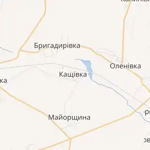 Село Кащівка знаходиться біля витоків річки Вовча, на відстані в 1 км розташовані села Бригадирівка та Оленівка. Поруч проходить залізниця, станція Зеленівка на відстані 1 км.