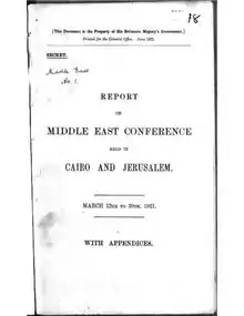 - Report on Middle East Conference held in Cairo and Jerusalem, March 12th to 30th, 1921, Appendix 23, pp. 153—157.