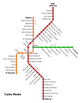 Каїрський метрополітен — мережа ліній метрополітену у Великому Каїрі (Єгипет). Це була перша з трьох повноцінних мереж метро в Африці та перша в арабському світі, яка була побудована. [4][5] Було відкрито в 1987 році, черга лінії 1 від Гельвана до площі Рамзес завдовжки 29 км [6] Станом на 2013 рік метро перевозило майже 4 мільйони пасажирів на день. [1] Станом на серпень 2020 року у Каїрському метрополітені є 74 станції[3], мережа має у своєму складі 3 - станції пересадки, загальною довжина мережі 89,4 км.