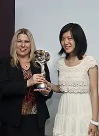 Хоу Іфань (праворуч) отримує «Каїссу» 2011 року з рук Сьюзен Полгар