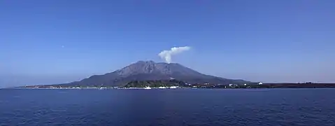 Вулкан Сакура-дзіма — природний символ міста. Висота вулкана становить 1117 м. Подорож від міста до вулкана поромом займає 15 хвилин[6].