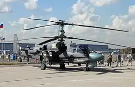 Ка-52 (Hokum B за класифікацією НАТО, також відомий як «Алігатор») — російський бойовий вертоліт, командирська машина армійської авіації, здійснює розвідку місцевості, цілевказівки і координацію дій групи бойових вертольотів. Машина здатна вражати броньовану і неброньовану техніку, живу силу і повітряні цілі на полі бою. Є продовженням розвитку моделі Ка-50 «Чорна акула».