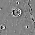 Кратер Монтівелло, знімок THEMIS. Зображення демонструє зсув ґрунту на північному валі кратера.