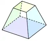| Правильний октаедр можна вважати квадратною біпірамідою (дві квадратні піраміди, з'єднані основами). | Тетракісгексаедр можна отримати з куба шляхом нарощення коротких квадратних пірамід на кожній грані. | Квадратна зрізана піраміда. |