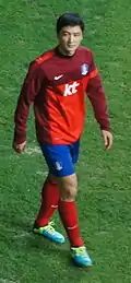 2008 року дебютував в офіційних матчах у складі національної збірної Південної Кореї. Наразі провів у формі головної команди країни 32 матчі, забивши 6 голів.