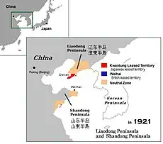 За конвенції, підписаної між Російською імперією та імперією Цін 15 (27) березня 1898 року в Пекіні, до Росії відійшла територія південній частині Ляодунський півострова — Квантунській півострів. Його було передано Китаєм в орендне користування Російської імперії на 25 років без будь-якої плати в обмін на військово-політичну підтримку Китаю проти Японії.