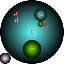 | t | правдивий (true, top) | +2/3 | 0 | 0 | 0 | 1 | 1/2 | 1/3 | 175 ГеВ |