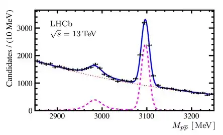 - § За певними властивостями подібний до очікуваного стану 2³P1, але за іншими властивостями подібний до тетракварка. Можливо, є квантовою суперпозицією цих двох станів.