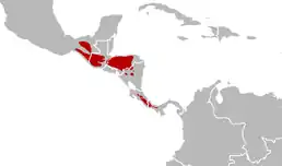 ![]() Ареал поширення довгохвостого квезала | ||||||||||||||||