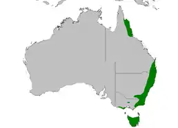 Штати Квінсленд, Новий Південний Уельс, Вікторія (Австралія), деякий района південної Австралії, острів Тасманія.
