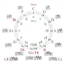 При русі по колу за годинниковою стрілкою, кожна наступна тональність матиме на один дієз більше від попередньої, а проти годинникової — на один бемоль більше.