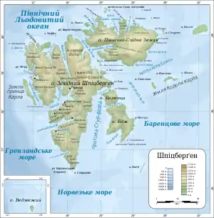 Карта ![]() Карта Шпіцбергена, Білий острів на північному сході | ||||