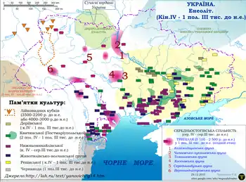 Датовано 3800—3500 pоками до Р.Х. за каліброваними радіовуглецевими датами.