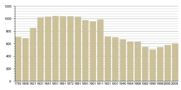 Динаміка населення (base Cassini de l'EHESS pour les nombres retenus jusque 1962[3], base Insee à partir de 1968 (population sans doubles comptes puis population municipale à partir de 2006)[4] · [5] ):