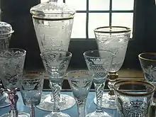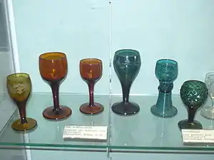 - Лікерний. На високій ніжці, кольоровий. Місткість — 25—30 мл.
