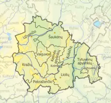 - Кражяйське (лит. Kražių seniūnija; адм. центр: Кражяй)