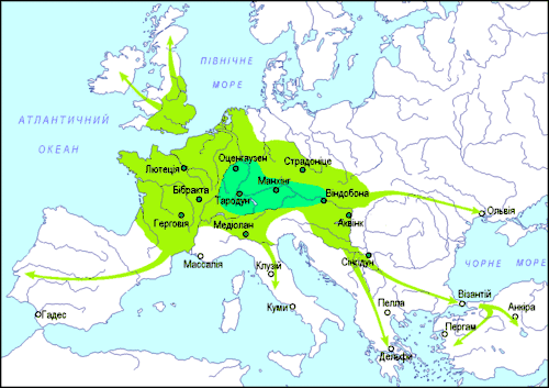Початковою областю розселення кельтів була територія на північний захід від Альп[2].