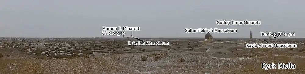 Перші археологічні розкопки в старому місті були проведені Олександром Якубовським у 1929 році. Більшість пам'ятників Куня-Ургенча були повністю або частково зруйновані. Найдавнішим спорудженням є фортеця Киркмолла, на місці якої в XI ст. побудована так звана «Академія» султана Мамуна ібн-мамуна, де навчалися енциклопедист Абу Рейхан Аль-Біруні і геніальний натураліст, лікар і філософ Абу Алі ібн-Сіна, відомий на Заході як Авіценна. За народною легендою, під час навали Чингісхана в цьому будинку сховалося сорок мулл і в результаті їхніх молитов він перевернувся догори дном.