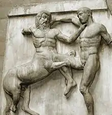 ![]() Битва лапіта з кентавром (Кентавромахія), метопа Парфенону, Британський музей |
