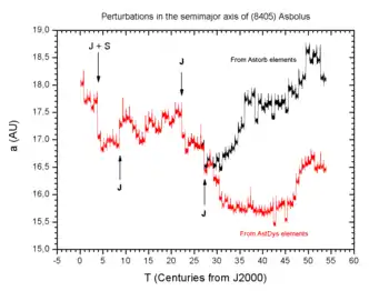 - Three clones of centaur 8405 Asbolus making passes within 450Gm. Архів оригіналу за 13 вересня 2015. Процитовано 2 травня 2009. (Solex 10) Архівовано 2012-02-10 у Wayback Machine. (англ.)