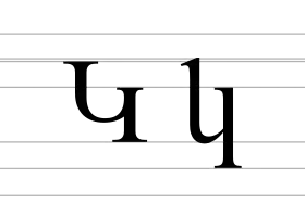 | Ա · Բ · Գ · Դ · Ե · Զ · Է · Ը · Թ · Ժ · Ի · Լ · Խ · Ծ · Կ · Հ · Ձ · Ղ Ճ · Մ · Յ · Ն · Շ · Ո · Չ · Պ · Ջ · Ռ · Ս · Վ · Տ · Ր · Ց · Ւ · Փ · Ք · Օ · Ֆ |