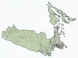 До складу регіонального округу входять міста Колвуд, Ленґфорд, Вікторія (Британська Колумбія), містечка Сідні, В'ю-Роял, муніципалітети Оук-Бей, Норт-Сааніч, Сентрал-Сааніч, Сук, Гайлендс, Іскваймолт, Метчосін, Сааніч, індіанські резервації Коул-Бей 3, Саут-Сааніч 1, Юніон-Бей 4, Ґордон-Рівер 2, Бечер-Бей 1, Іст-Сааніч 2, Нью-Сонґіс 1A, Ґаліано-Айленд 9, а також хутори, інші малі населені пункти та розосереджені поселення.