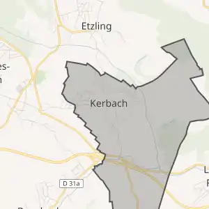 - Розташування муніципалітету Кербак на мапі Франції та сусідні муніципалітети