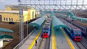 ![]() Новий парк станції Керч-Південна з пасажирськими платформами та вокзалом | |