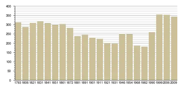 Динаміка населення (base Cassini de l'EHESS pour les nombres retenus jusque 1962[3], base Insee à partir de 1968 (population sans doubles comptes puis population municipale à partir de 2006)[4] · [5] ):