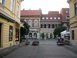 ![]() Колона св. Трійці і Ратуша на центральній площі Кестхея | |||||