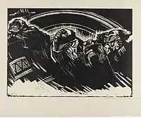 Аркуш «Штурм» (штурм вілли фабриканта) витримує порівняння з віртуозними гравюрами М. Клінгера. Але Клінгер веде розповідь про поблеми буржуа як представник буржуа в обмеженому просторі закритих для сторонніх особняків і приватних парків. Їм байдужі трагедії невдах, що поза мереживними ґратами приватних парків.