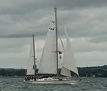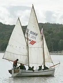 Подібне вітрильне озброєння і розташування осі стерна дає переваги по керованості і ходкості в сильний вітер.