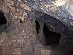 Ближня частина складається з 6 поверхів розвинених сміалів, з'єднаних між собою, та 3 виходів. Загальною протяжністю ходів близько 2,5 кілометрів, при зануренні в схил на 200 м. Відносне перевищення одного поверху над іншим коливається від 4 до 10 м.