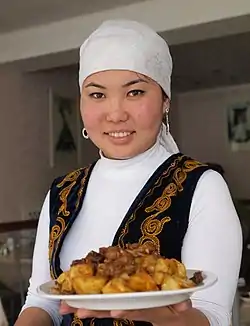 Киргизька кухня містить дуже багато рецептів випічки, які відрізняються в залежності від регіону країни. Хліб у вигляді коржів випікають у тандирах. На півночі хліб має прямокутну форму, бо його печуть у пічках такої форми[2][3]. Дуже багато борошняних виробів: