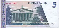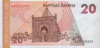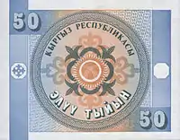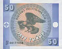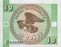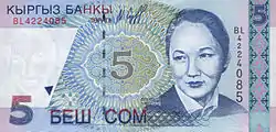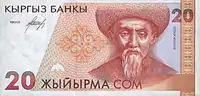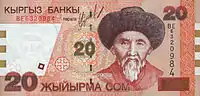 | Банкноти | 20, 50. 100, 200, 500, 1000, 5000 сом |