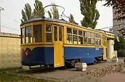 Пам'ятник київському трамваю, 1928 року випуску (1987, демонтований 2015 і переміщений до музею[13])