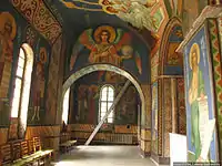 У верхній зоні хорів знаходяться зображення небесних сил. Два архангела над арками у центральній частині були написані художником С. Гайдуком (1884). У простінках між вікнами розміщено фігури пророків з хартіями у руках.