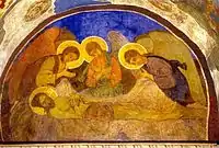 Фресковий розпис XII ст. на хорах зберігся лише у князівській молитовні. Він представлений житійним циклом Іоанна Предтечі. На південній стіні молитовні збереглося зображення «Ангела, що проводжає отрока Іоанна до пустелі».